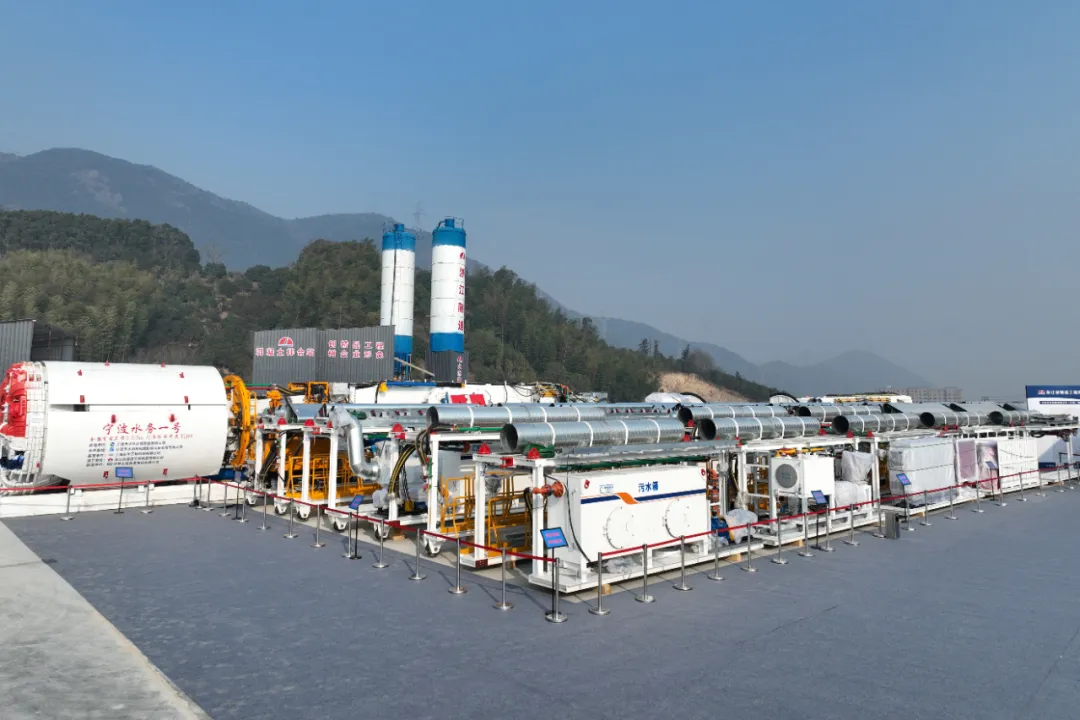 作為省、市重點(diǎn)工程建設(shè)項(xiàng)目,寧波市水庫群東西線聯(lián)通工程位于寧波市奉化區(qū)南部山區(qū),工程設(shè)計(jì)輸水規(guī)模為40萬m³/d。建設(shè)內(nèi)容包括一條干線、兩條支線,以及沿線調(diào)節(jié)站及各類閥井,全線總長(zhǎng)約40.54km。6#隧洞作為本工程重要節(jié)點(diǎn)性分部工程,全長(zhǎng)約12.28km,采用鉆爆法+TBM(全斷面硬巖掘進(jìn)機(jī))進(jìn)行隧洞開挖。值得一提的是,本次所采用的敞開式TBM設(shè)備“寧波水務(wù)一號(hào)”,其開挖直徑4.03米,整機(jī)長(zhǎng)度約225米,掘進(jìn)長(zhǎng)度10.87km,為寧波水利行業(yè)首次應(yīng)用。