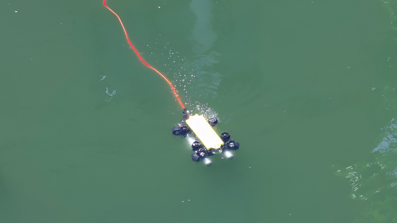 “水下監(jiān)管員”水下機(jī)器人由岸基控制臺、水下本體、通訊和供電系統(tǒng)、輔助工具、傳感器和用戶模塊組成。水下機(jī)器人不僅能夠通過高清影像實時檢測水質(zhì)指標(biāo)、排查壩體閘門隱患,徹底解決人工巡檢的盲區(qū)難題;還能如“清道夫”般穿梭于壩體之間,清理水下雜物淤積,提升水庫蓄水調(diào)節(jié)能力。此外,還能協(xié)助搜索落水物體或人員,為經(jīng)濟(jì)救援提供支撐。
