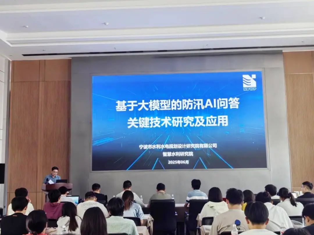 在第二日的講座報告與交流環(huán)節(jié)中,我院智慧水利研究院院長顧巍巍以“基于大模型的防汛AI問答關(guān)鍵技術(shù)研究及應(yīng)用”為題,通過現(xiàn)場演示防汛智能AI問答系統(tǒng),生動展示了人工智能技術(shù)在防汛決策支持中的創(chuàng)新應(yīng)用;基礎(chǔ)研發(fā)部總監(jiān)陳龍贊圍繞“甬水院模型平臺:從甬江流域模型到澤圖”,詳細(xì)闡述了我院自主研發(fā)的水利計算模型平臺的技術(shù)演進(jìn)歷程和核心優(yōu)勢;防災(zāi)減災(zāi)部總監(jiān)江雨田則通過播放數(shù)字孿生水庫建設(shè)視頻,結(jié)合“數(shù)字孿生水庫建設(shè)關(guān)鍵技術(shù)及應(yīng)用”的專題報告,直觀呈現(xiàn)了數(shù)字孿生技術(shù)在水庫智慧化管理中的實踐成果。三位專家的授課既有理論深度,又包含豐富的實踐案例,系統(tǒng)解析了智慧水利領(lǐng)域關(guān)鍵技術(shù)的研發(fā)路徑與創(chuàng)新應(yīng)用。