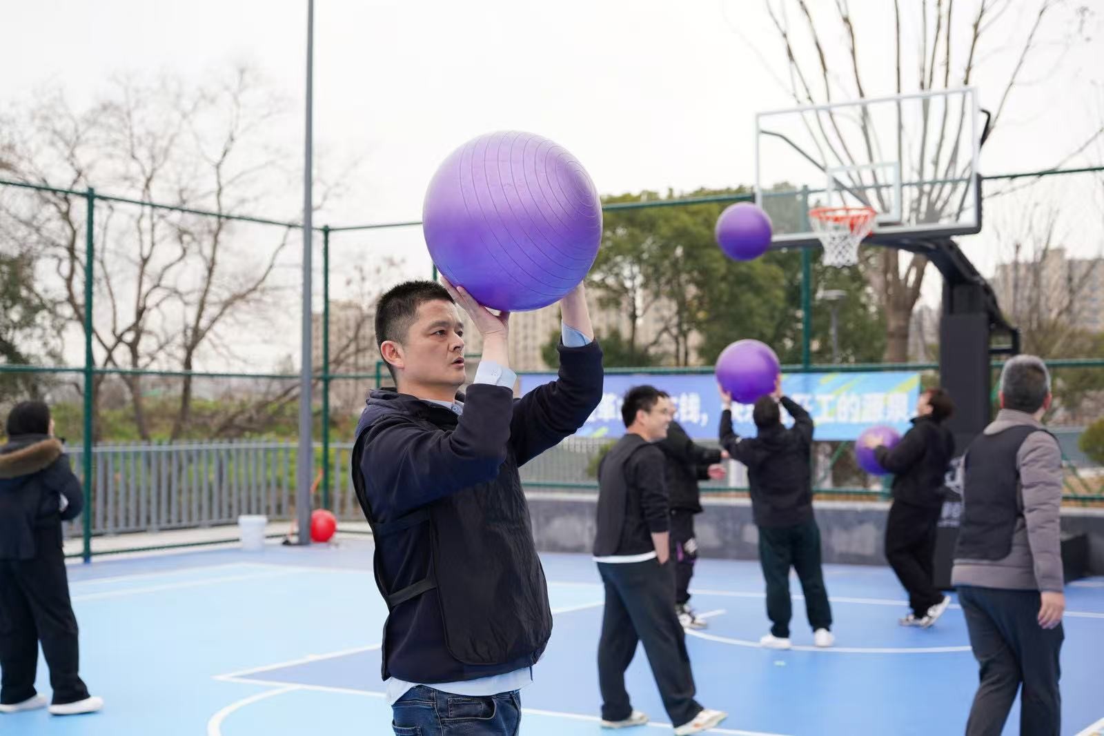 “勇立潮頭”考驗的是反應與穩(wěn)定,隊員們圍成圓圈快速移動,同步接住充氣柱,1分鐘內有效移動次數(shù)不斷刷新。“超級NBA”中,大家用瑜伽球投籃,雖姿勢各異,但進球瞬間的歡呼同樣熱烈。“乘風破浪”要求隊員在充氣墊上接力鋪設充氣棒,讓體重不輕于75kg的“重量級”選手穩(wěn)坐墊上,隊友們默契配合,如乘風破浪般前行。最后的“巨人腳步”由每隊兩名領隊腳穿巨型鞋蹼接力奔跑,滑稽的動作引來全場笑聲不斷。