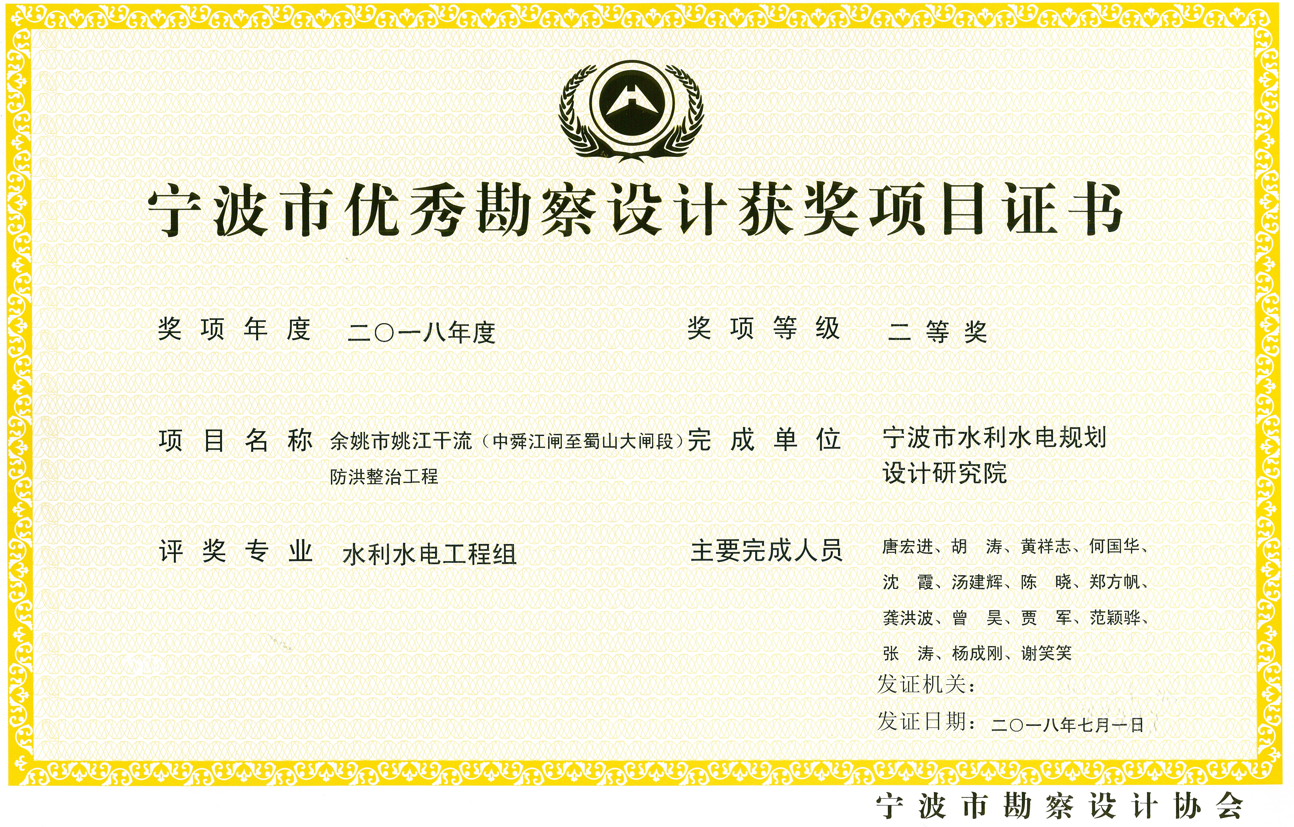 寧波市優(yōu)秀勘察設(shè)計獎