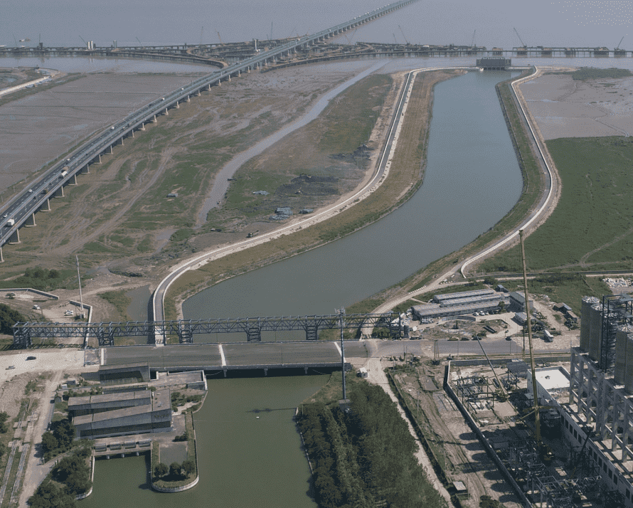 本工程位于寧波市鎮(zhèn)海區(qū)東部,新泓口河下游,現(xiàn)新泓口水閘外海側(cè),金塘大橋橋下。結(jié)合排澇閘外移及兩側(cè)防護堤的建設,將有利于該海域加快灘涂淤漲,以部分恢復錢塘江河口南岸的淺海潮灘濕地;隨著灘涂淤漲有利于該海域增加海洋生物總量,有利于生物多樣性的恢復及生態(tài)環(huán)境的改善。