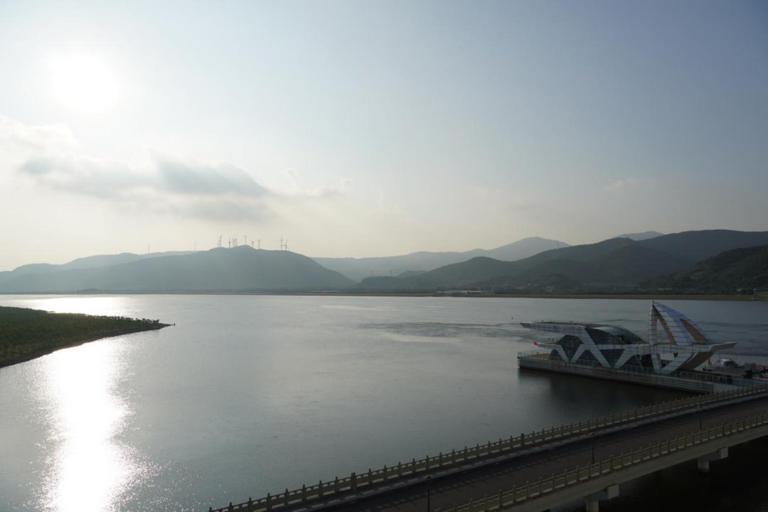 梅山灣外,銀浪拍岸;梅山灣內(nèi),碧波含翠。首先,研學(xué)隊(duì)伍到達(dá)梅山灣建設(shè)管理中心,跟隨工作人員登樓參觀,眺望南堤樞紐及附近設(shè)施,聆聽(tīng)工程總體建設(shè)情況,并觀看宣傳片,了解該工程的誕生始末。