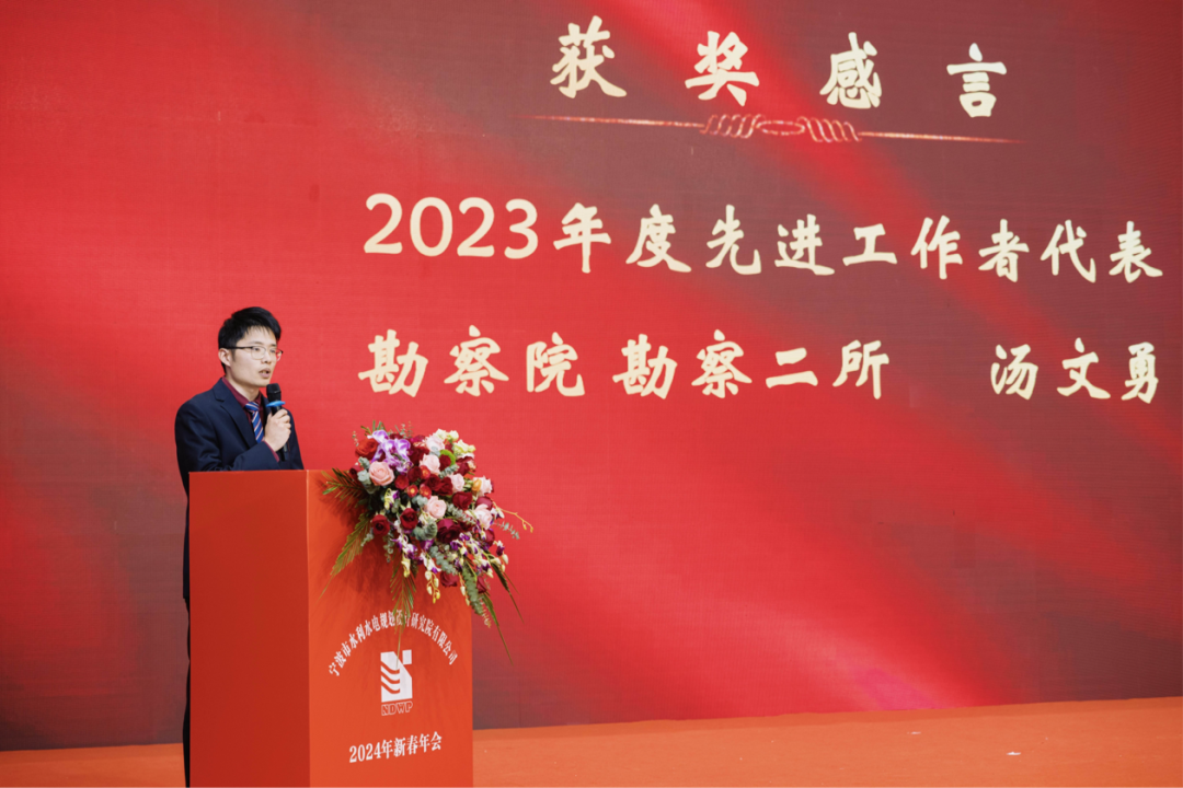 2023年度先進(jìn)工作者獲獎(jiǎng)代表勘察院勘察二所的湯文勇、2023年度最佳奉獻(xiàn)獎(jiǎng)獲獎(jiǎng)?wù)吖こ淘涸O(shè)計(jì)三所的沈霞、2023年度最佳新人獎(jiǎng)獲獎(jiǎng)代表規(guī)劃院規(guī)劃二所的魯經(jīng)宇,先后上臺(tái)發(fā)表獲獎(jiǎng)感言,以真摯的情感、質(zhì)樸的語(yǔ)言和滿滿的憧憬,表達(dá)了自己與企業(yè)共同成長(zhǎng)過(guò)程中的勵(lì)志故事和切身感悟,表達(dá)了寧波院中堅(jiān)力量、團(tuán)隊(duì)骨干和新兵后輩的豪情壯志。